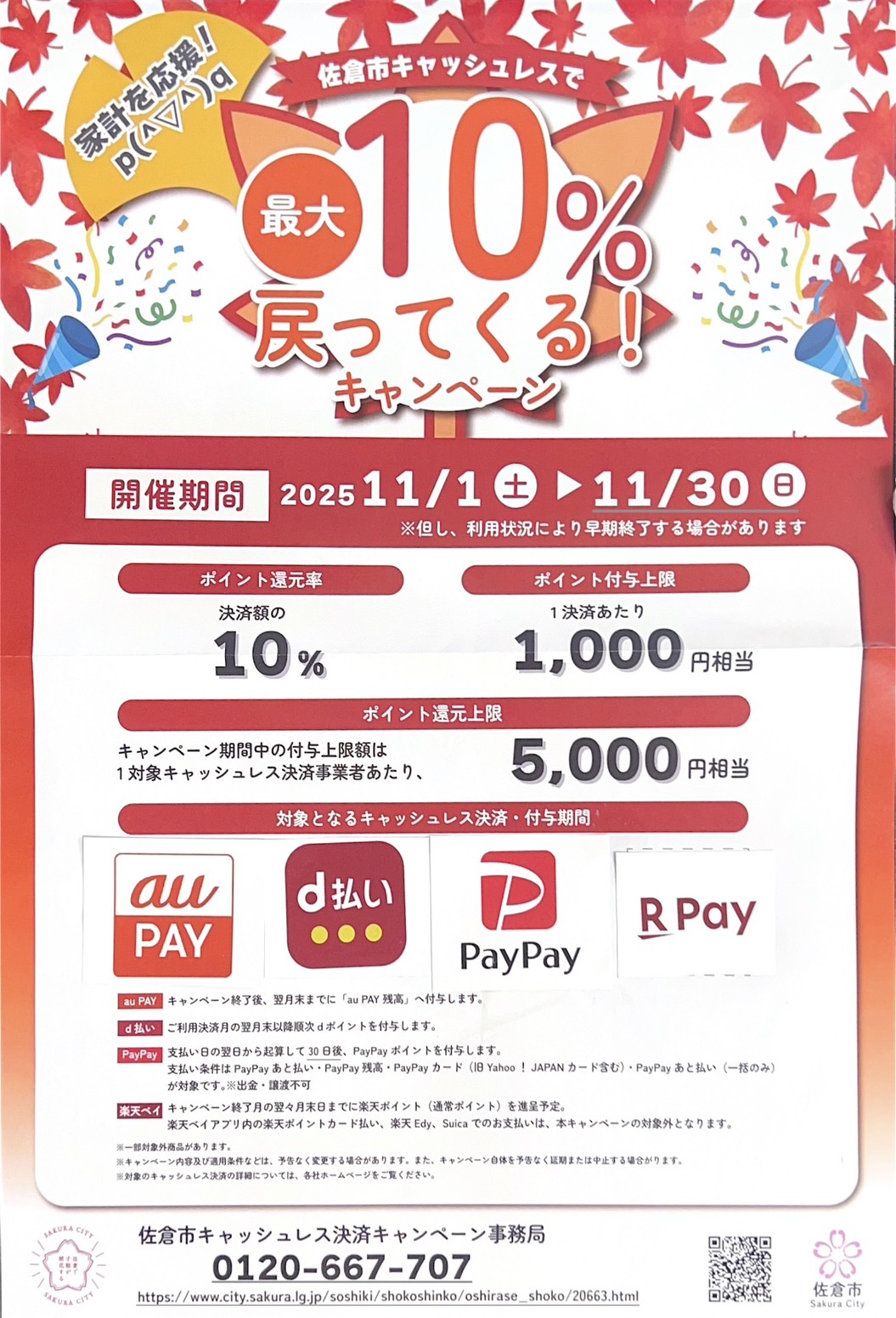 佐倉市キャッシュレス決済キャンペーン開催のおしらせです💫