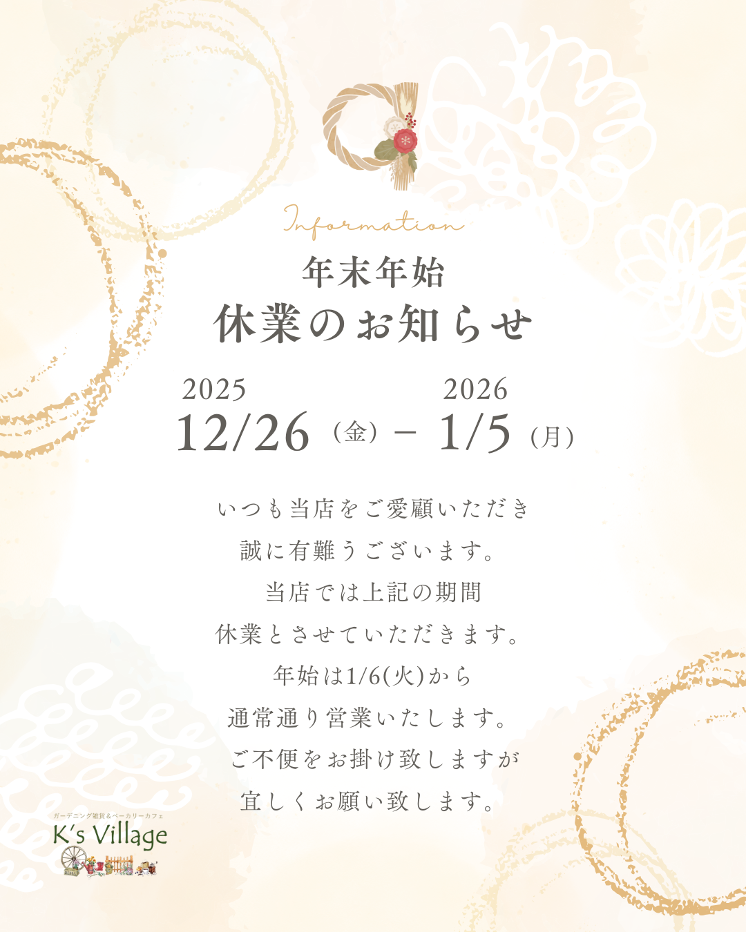 #ビレッジアップ #ビレッジアップガーデン #冬期休業 #冬期休業のお知らせ #今年もわずか #来年もよろしくお願いします #年末年始のご案内